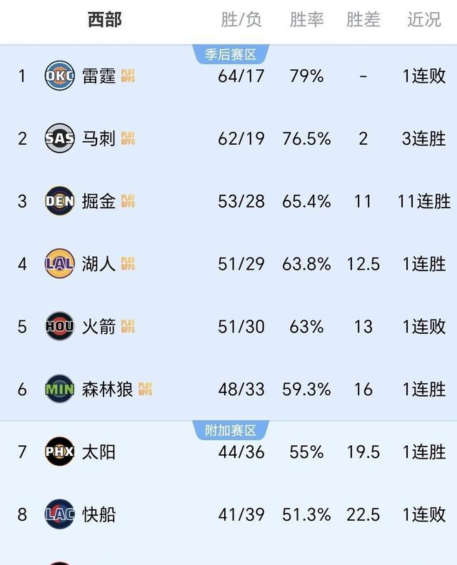 这场比赛的失利,对火箭队而言,远不止终结连胜那么简单。 在比赛开始前,火箭队与洛杉矶湖人队的战绩同为51胜29负。 由于湖人队在相互交手战绩上占优,他们排在西部第四,火箭队位列第五。 两队都在为争夺西部第三的位置而努力,因为更高的排名意味着在季后赛首轮拥有主场优势,并且可能避开一些难缠的对手。 火箭队本有机会通过赢下这场比赛,在战绩上追平甚至反超当时排名第三的丹佛掘金队,将争夺更好排名的主动权牢牢握在自己手中。 然而,这场败仗让一切化为泡影。 输球后,火箭队的战绩变为51胜30负,胜场数落后于湖人队。 更重要的是,常规赛只剩下最后一场比赛,火箭队想要反超湖人队,不仅需要自己赢下收官战,还必须寄希望于湖人队输球。